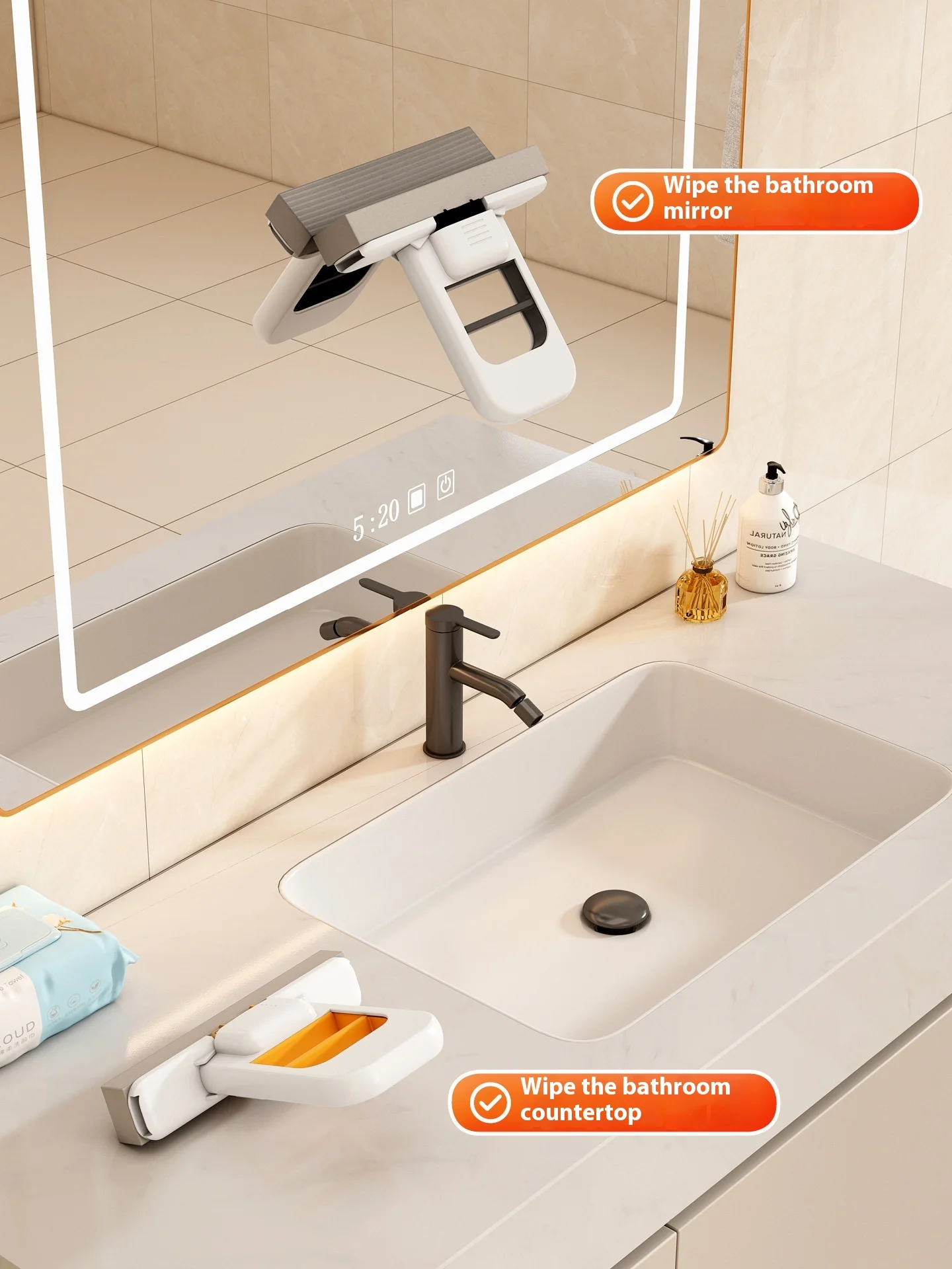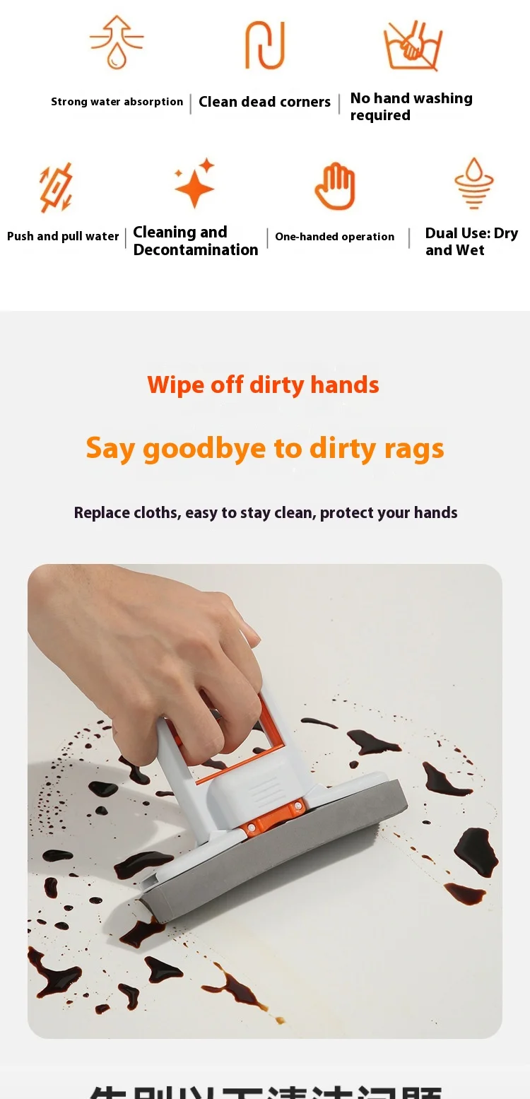 Boxed Eco-Friendly Dual-purpose Foldable Mop PVA Chenille Portable Lifting Squeezing Water Kitchen Countertop Home High