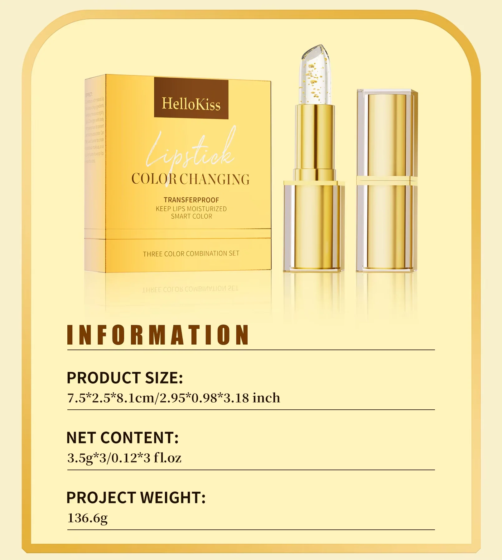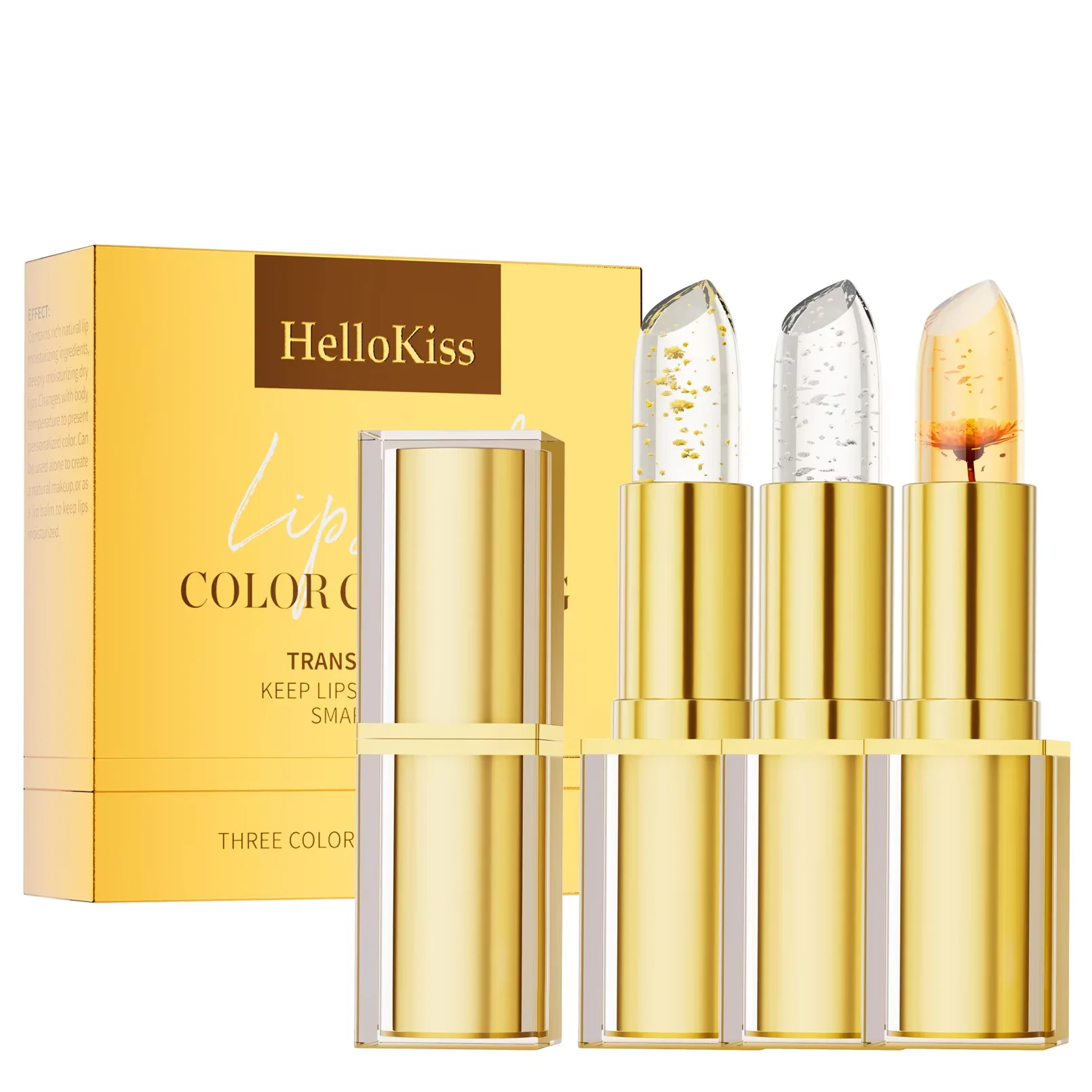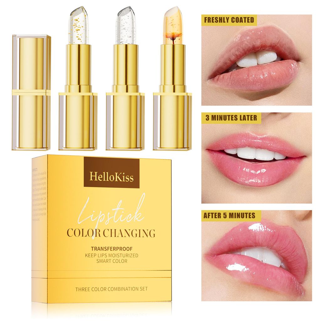 Natural Temperature Changing Three-Piece Gold Foil Lipstick Set Moisturizing and Nourishing Floral Color-Changing Lip Balm