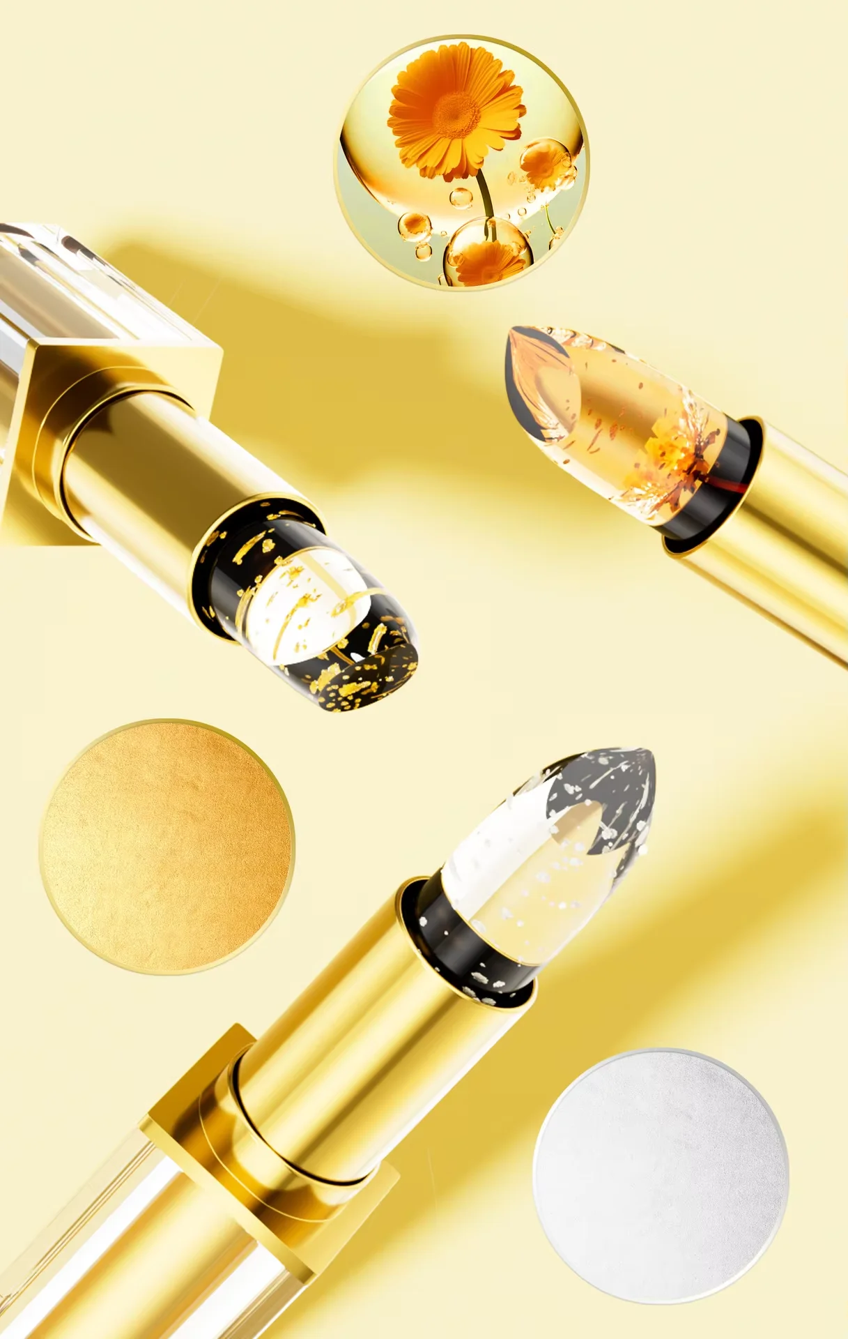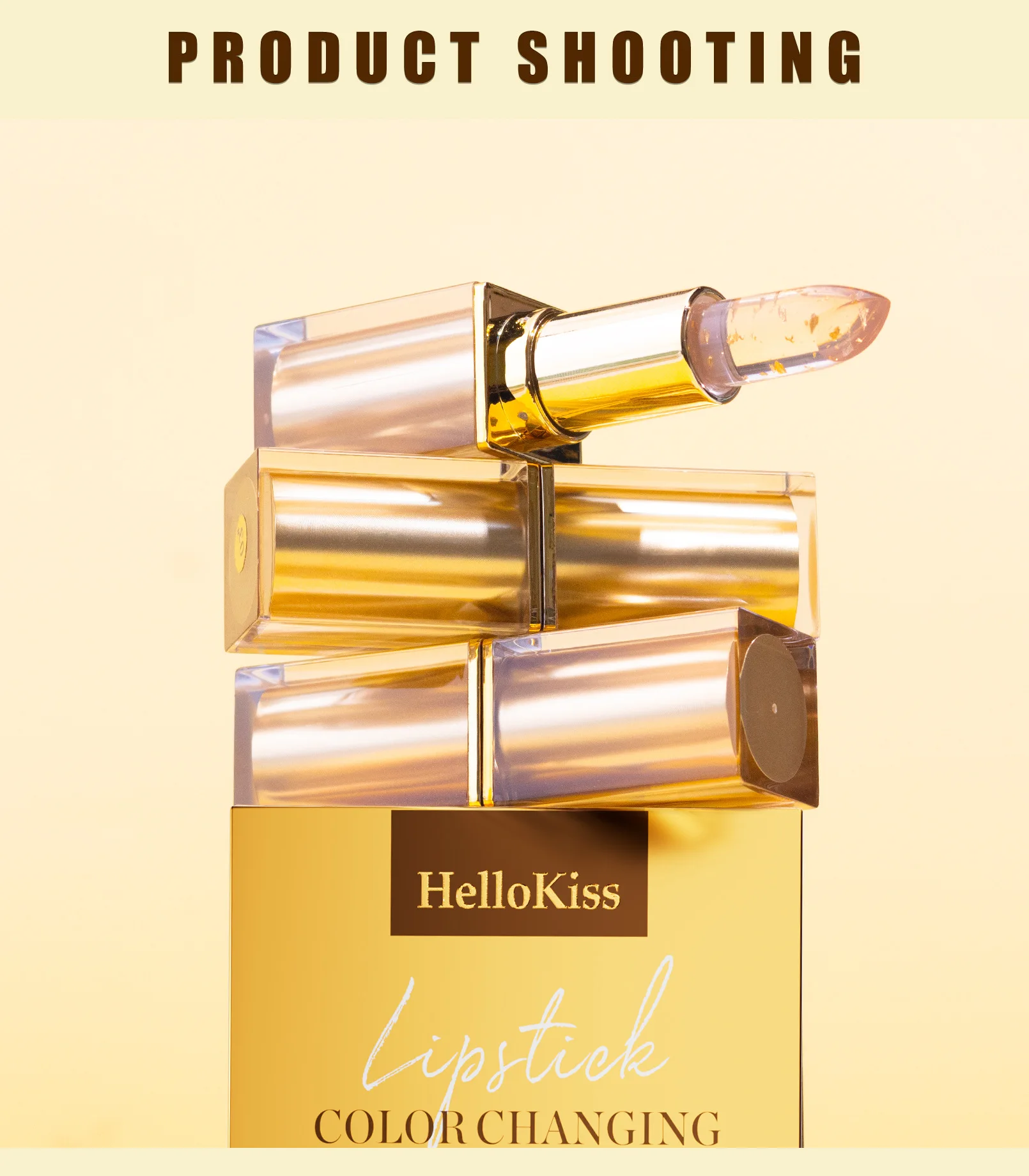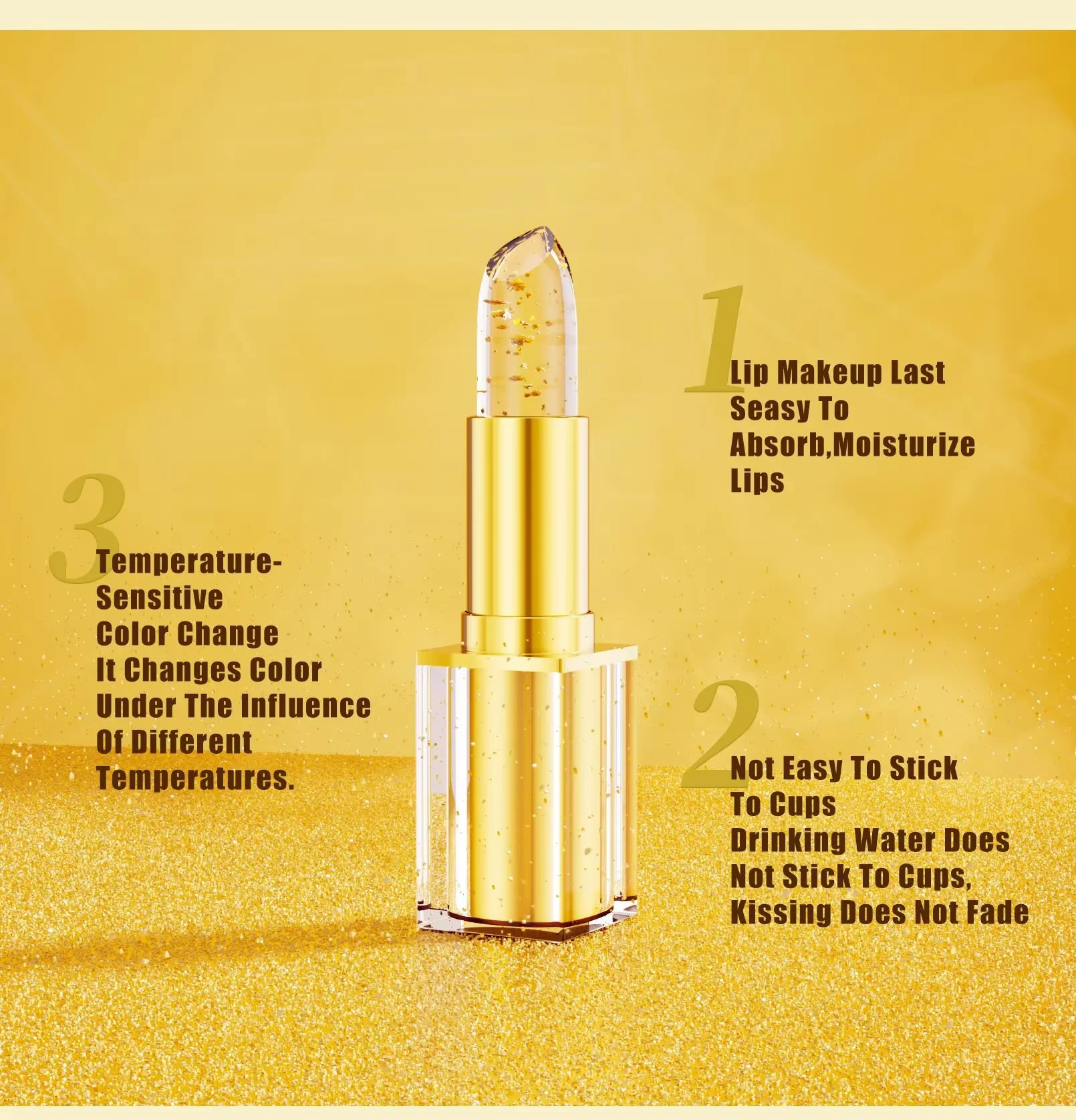 Natural Temperature Changing Three-Piece Gold Foil Lipstick Set Moisturizing and Nourishing Floral Color-Changing Lip Balm