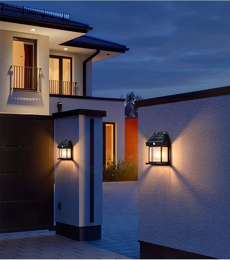 New Arrival Solar Powered Garden Courtyard Led Wall Mounted Lights Outdoor Ip65 Waterproof With Body Motion Sensor